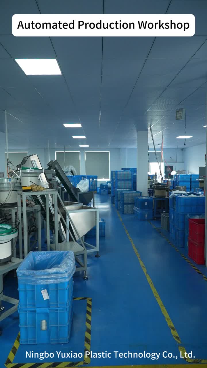 Ningbo Yuxiao Plastic Industry Technology apresenta nossa oficina de produção automatizada de conta-gotas, spray de gatilho, bomba de loção, bomba de alimentos e spray de névoa, usando pellets de PP reciclados para fabricação eficiente e ecológica